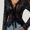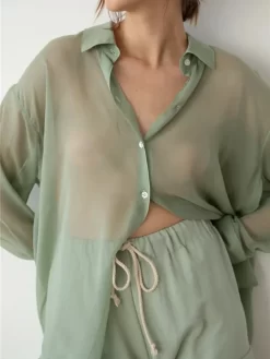 Womens Blouse, Lapel Collar Long Sleeve Button-Down See-Through Loose Shirt for Ladies