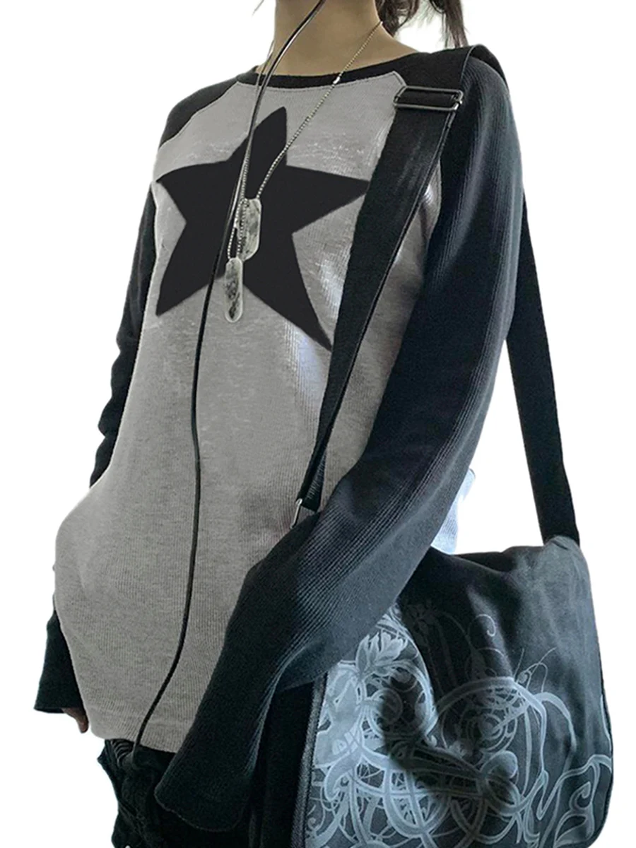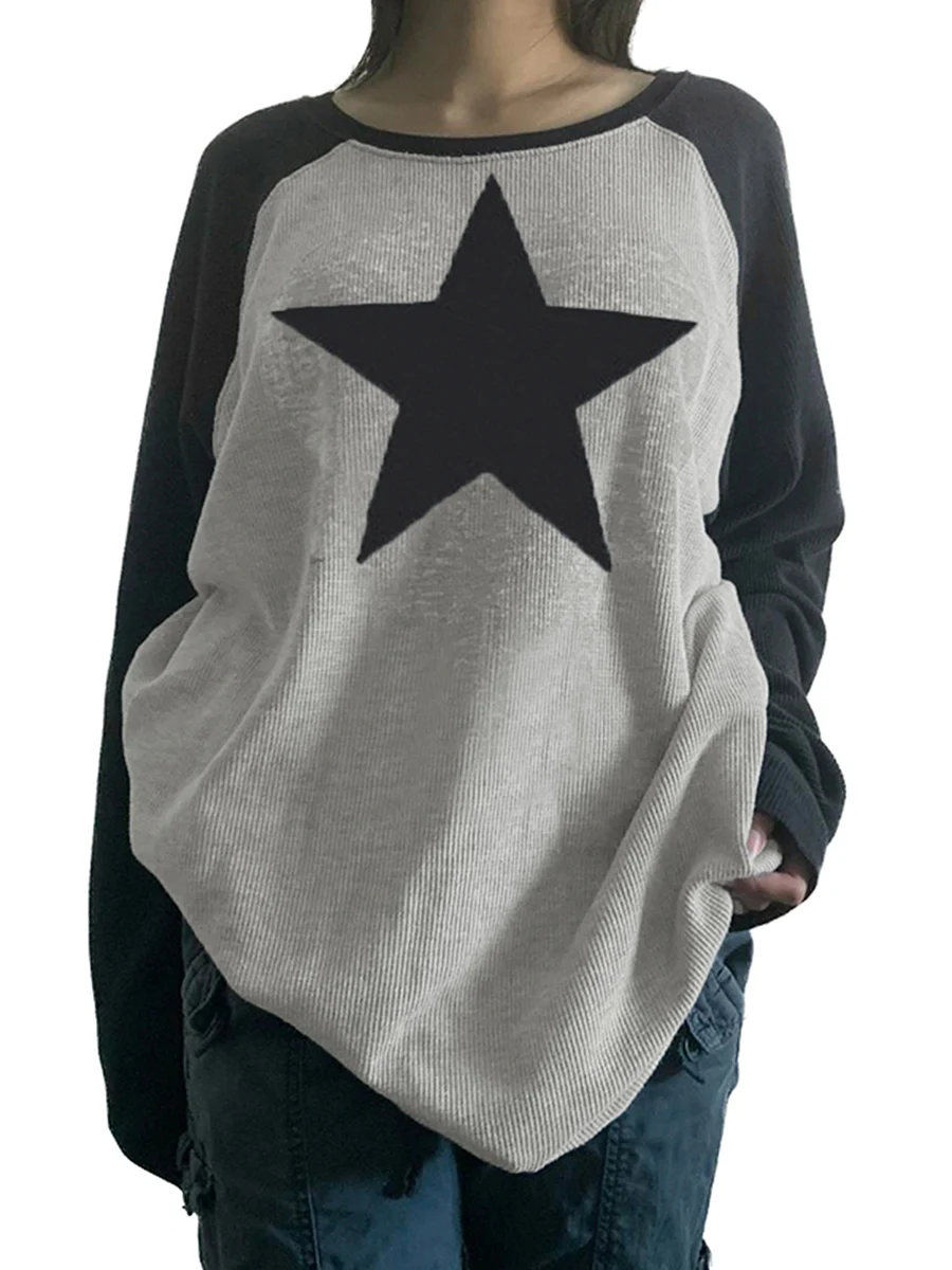 Women Pullover Sweatshirts Star Printed Loose Casual Round Neck Long Sleeve Tops Autumn Streetwear